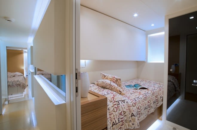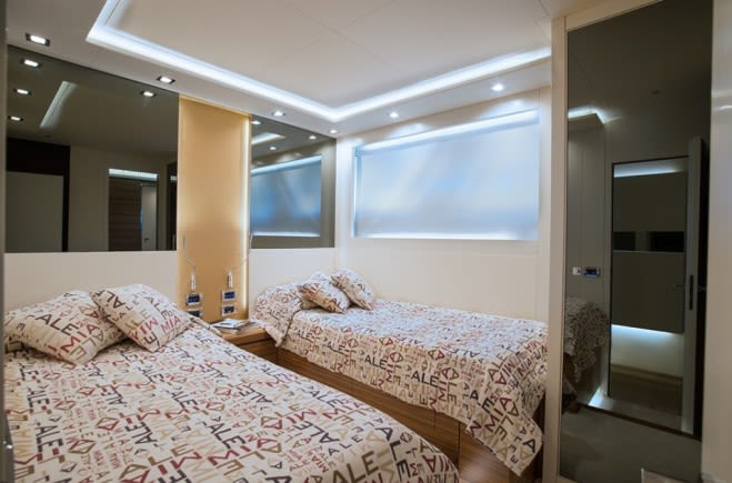 Моторная яхта Alemia построена на верфи Italcraft в серии 105 maxi open. та роскошная яхта доступна в аренду. Она может принять на борт до 10 гостей в 5 каютах (1 Master, 1 VIP, 1 twin, 2 трансформируемые twins двухъярусными кроватями). Также на яхте предусмотрено размещение 5 членов экипажа.
