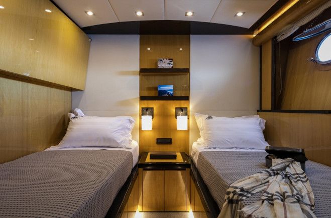 Two twin cabins, each with one additional Pullman berth and en suite facilities, that can be also converted to doubles.
