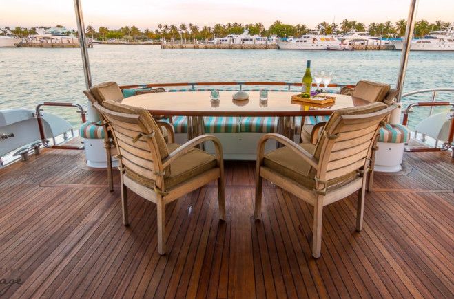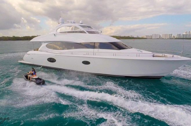 M/Y Chip is an 84ft Lazarra luxury yacht available for charter. With a total of 5 cabins (1 King, 2 Queen, 1 Double, 1 Twin), she can charter up to 8 guests with a crew of 2. M/Y Chip is a beautiful 2007 Lazzara 84 flybridge luxury motor yacht. Her 5 Stateroom layout with crew accommodations for two, offers very generous interior volume. The FWD accommodation set up has two staterooms with separate private heads. The stairwell midship leads down to the master suite as well as the two VIP suites. The master full beam suite has a spacious head and with beautiful stone shower. Large panoramic windows invite natural light into the master suite making for breathtaking views while underway. Both midship guest suites have their own dedicated private heads and full-size innerspring mattresses. The Crew quarters aft accessed from the transom has two separate accommodations and a shared head.