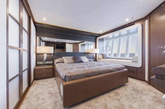 Четыре каюты этой моторной яхты включают: просторную каюту Владельца от борта до борта, две гостевых VIP каюты и еще одну гостевую каюту. Каждая каюта оборудована собственным санузлом. з просторного салона с очень большими окнами открывается фантастический вид на морские дали.