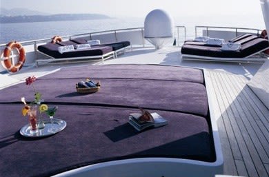 Обширная территория для загара расположена на флайбридже. В кормовой части палубы, а также на верхней прогулочной палубе все готово, чтобы гости с наслаждением потягивали коктейли на свежем воздухе. Это идеальное место для расслабления и развлечений.