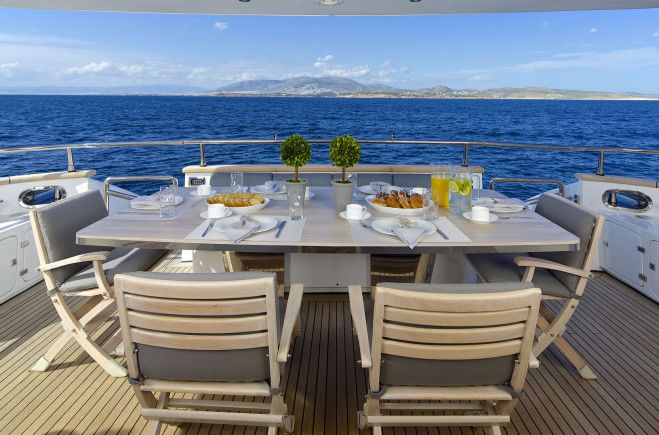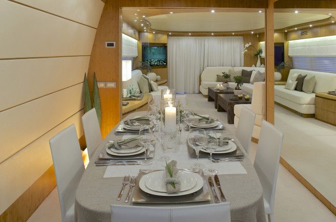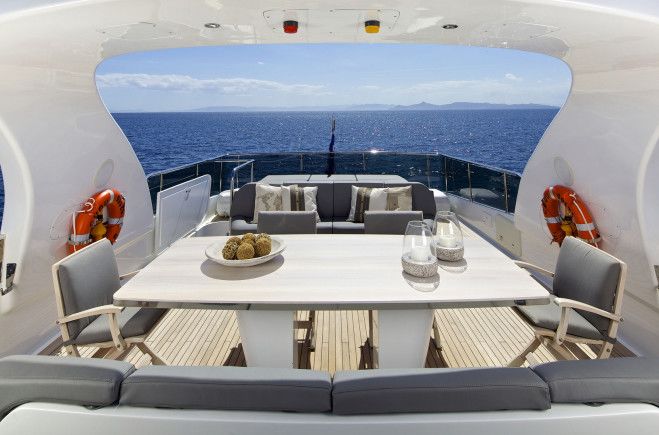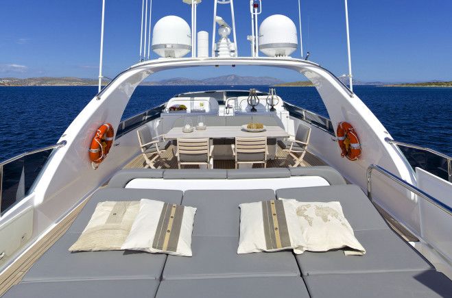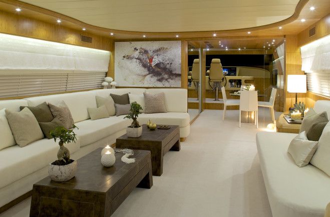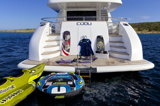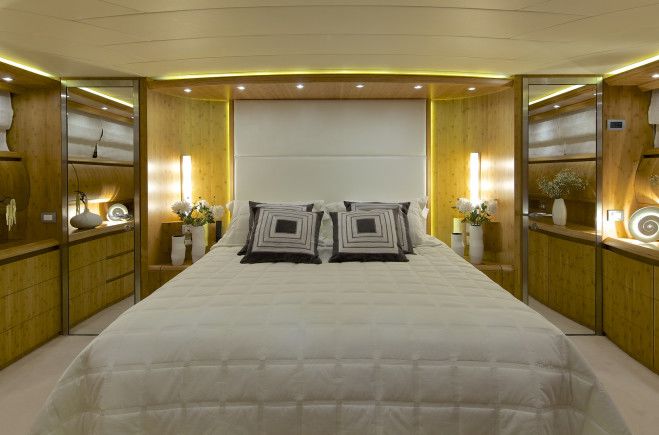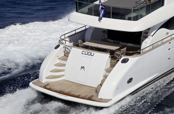 Luxury motor yacht CUDU can accommodate up to 8 guests in 4 cabins. He master and VIP staterooms are both the full width of the beam forward and aft of the yacht. The two twin cabins are situated amid ships, Each of the twin cabins have a Pullman berth.