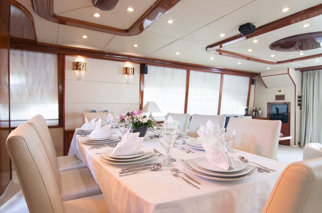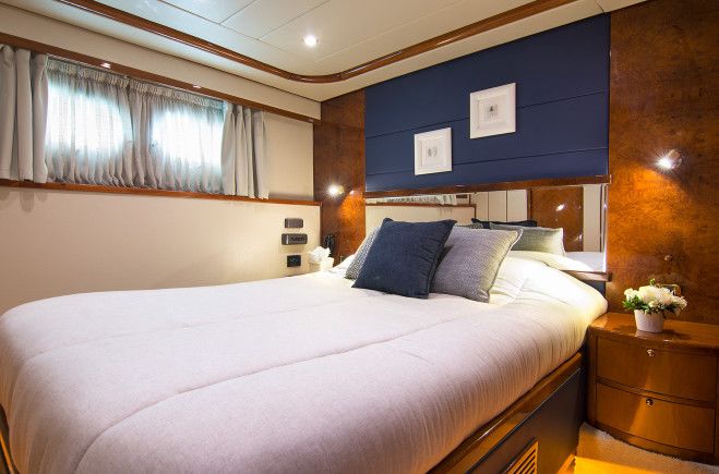 One master cabin, three cabins with double bed, and one cabin with twin beds. All cabins have en suite private facilities. TV / DVD / CD / MP3 / Ipod. Amazing and spacious bathroom area with Jacuzzi tub in the master cabin.