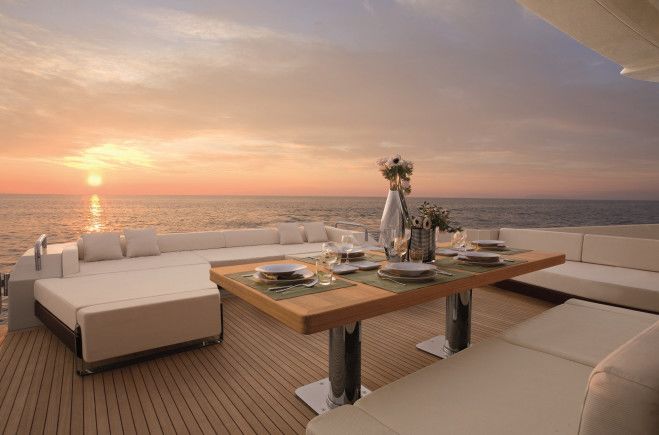 It’s silent and fast cruise, due to the Rolls Royce Kamewa jet engines, is another important plus of the yacht.