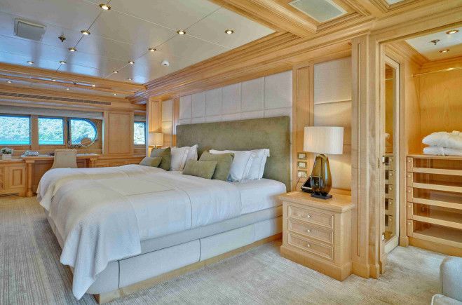 ELENA V — классическая яхта с элегантным интерьером и безупречным дизайном, построенная титулованной верфью Codecasa. После рефита в 2023 году яхта находится в идеальном состоянии и полностью готова к чартеру. На главной палубе расположена роскошная мастер-каюта владельца во всю ширину корпуса с кроватью emperor size, кабинетом, раздельной ванной комнатой «для него и для неё» с гидромассажной ванной и телевизором, а также просторной гардеробной. Это идеальное уединённое пространство для основных гостей, обеспечивающее максимальный комфорт и приватность.
