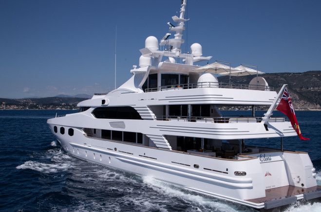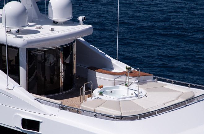 Eleni’s handsome and elegant design blending both style and comfort, makes her stand out in the most sophisticated ports of call. This yachts beautiful interiors and exteriors provide accommodation for 12 guest with unparalleled levels of comfort. Her sundeck is a highlight of the design with a spacious sun bathing area, a Jacuzzi, sun loungers, fully equipped gym and dining facilities making it an ideal area for entertaining or relaxing whilst on your luxury yacht vacation. Additionally, the upper deck offers an additional sun lounging area, half moon seating and large sunbathing mattresses.