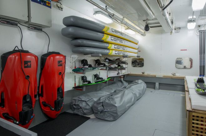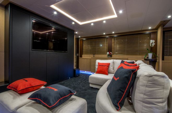 2 x twin cabins which can both convert to double cabins if needed - each single bed is (90cm x 90cm), 14" TV and DVD player