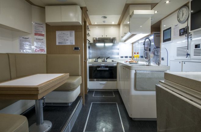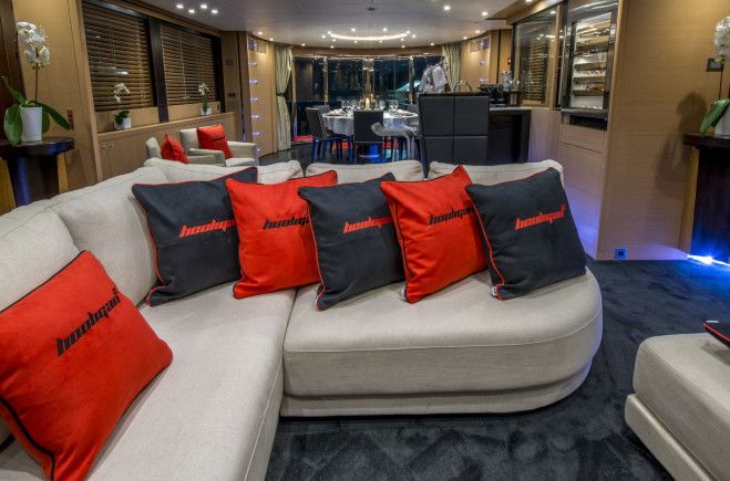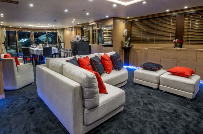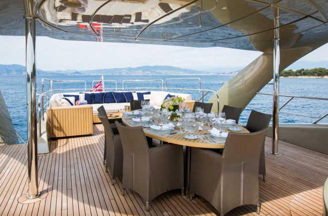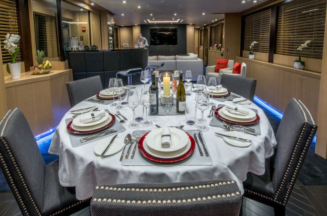 Saloon Dining area aft - in the saloon opening onto the aft deck with seating for up to 8 guests (it’s really tight to have 10 and effects the service as crew cannot move around the whole table)