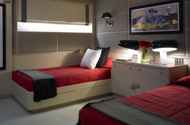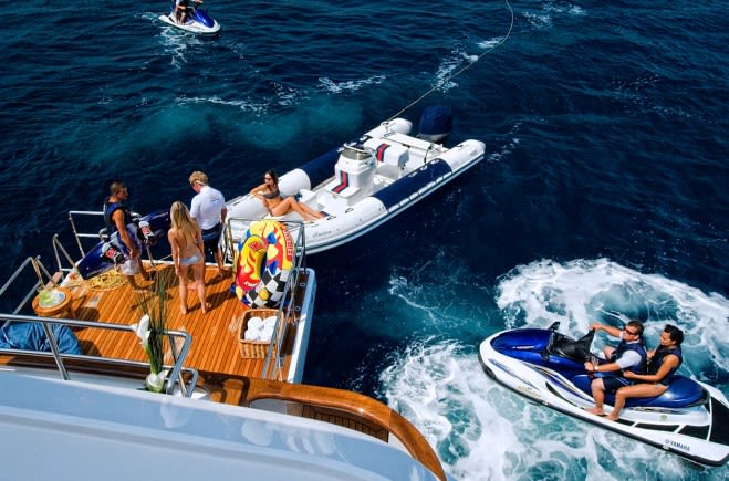 Декор на яхте выполнен в безупречном стиле Bannenberg & Rowell, гостям обеспечен беспроводной доступ в интернет, а стабилизаторы качки при нулевой скорости позволяют комфортно проводить время как во время движения яхты, так и на стоянках. Все водные игрушки в распоряжении гостей — для их веселья и удовольствия. И что очень важно: 13 отлично тренированных и опытных члена экипажа гарантируют безукоризненное обслуживание и великолепную кухню.