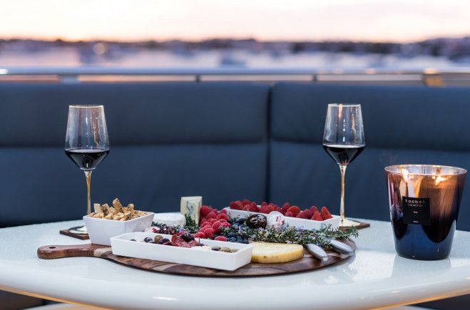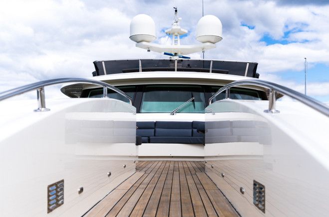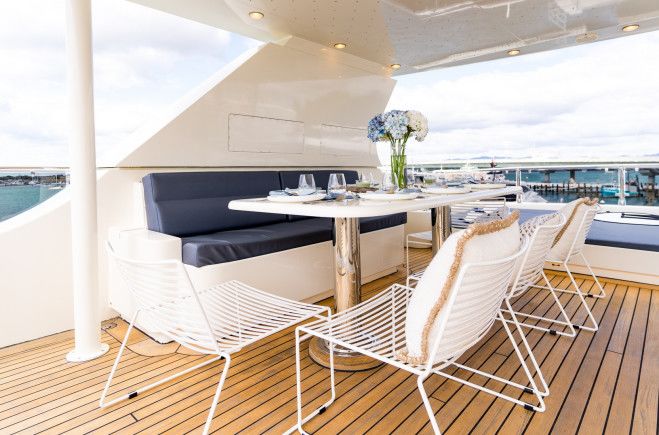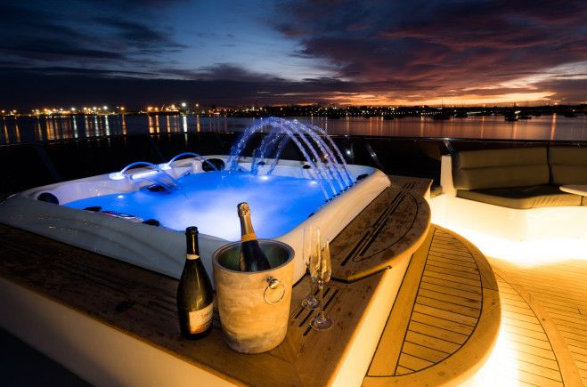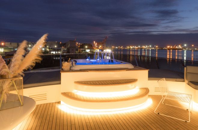 iRAMA has expansive deck areas, with a fabulous sun deck, hosting a large Jacuzzi with sun pads, seating and a dining area and a bar