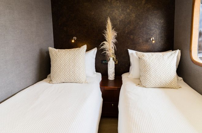 She is built with GRP hull and GRP superstructure. With a cruising speed of 15 knots, a maximum speed of 18 knots - she is the perfect combination of performance and luxury.