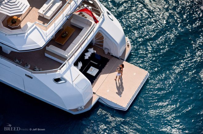 Both aft guest cabins on the lower deck, one twin and one double, conveniently transform into a large VIP suite with salon and sleeping room.