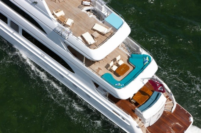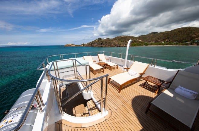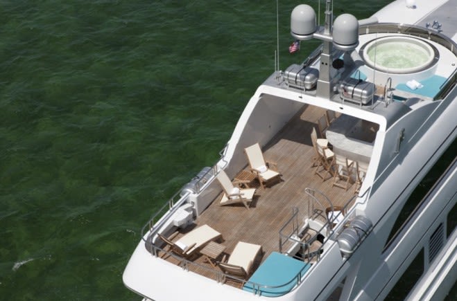 Чуть выше идет уровень сандека с ванной jacuzzi на палубе и шезлонгами для загара.