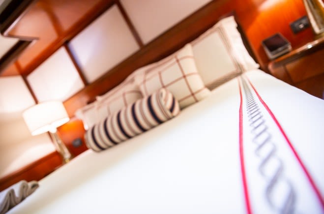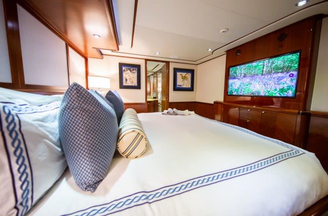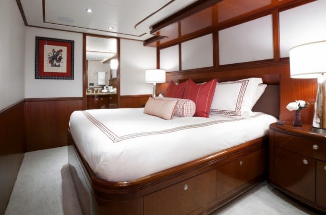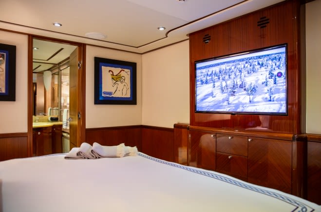 Гостевые каюты расположены на нижней палубе, в каждой из них есть ванна jacuzzi и душ. В всех каютах работают док-станции iPod, а также полная аудио и видео система развлечений с телевизорами с плоскими экранами. Гостям предлагается услуга спутникового телевидения, Kaleidescape, система Blue Ray, подключение iPod.