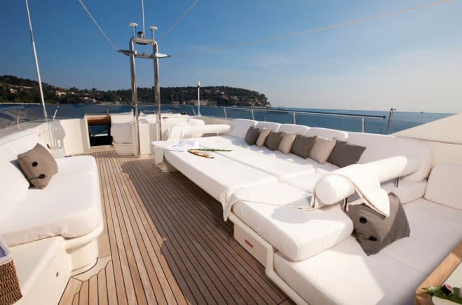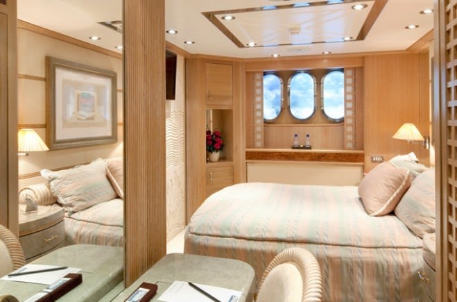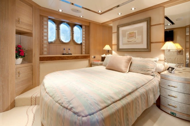 Большая многоместная диванная зона может легко трансформироваться в матрасы для загара, причем подвижные защитные тенты в считанные минуты превращают эту палубу в место абсолютного релакса, в то время как ваша яхта движется вдоль южного побережья Франции. После необычайных приключений и исследований волшебного по красоте побережья Средиземного моря с борта роскошной яхты, вас ждет абсолютный комфорт в ее каютах. Сон здесь особенно сладок в конце долгого, солнцем наполненного дня.