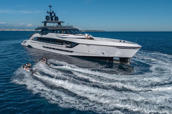 Кормовая платформа, бич-клаб, массажный кабинет, мастер-каюта на главной палубе, бассейн, джакузи на палубе, лифт, коммерческая яхта, наружная аудиосистема, телевизоры во всех каютах, телевизор в салоне, Starlink, подключение Wi-Fi