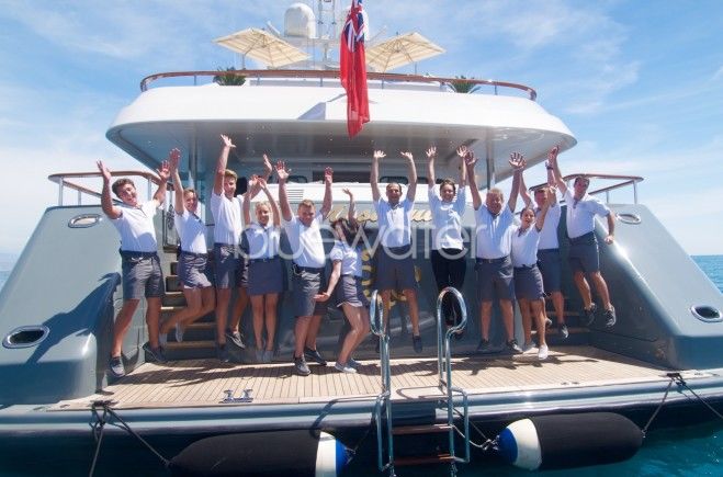 Что касается открытых зон, то верхняя прогулочная палуба 50-метровой супер-яхты — настоящая вершина дизайнерской мысли. Jakuzzi на этой палубе окружена лежаками для загара и шезлонгами, здесь же расположен бар, есть и два столика для тех, кто захочет посидеть в некотором уединении, насладиться великолепной кухней в неформальной обстановке на свежем воздухе. Приватность на яхте в приоритете, и гостям не придется беспокоиться о том, как обеспечить себе спокойный отдых.