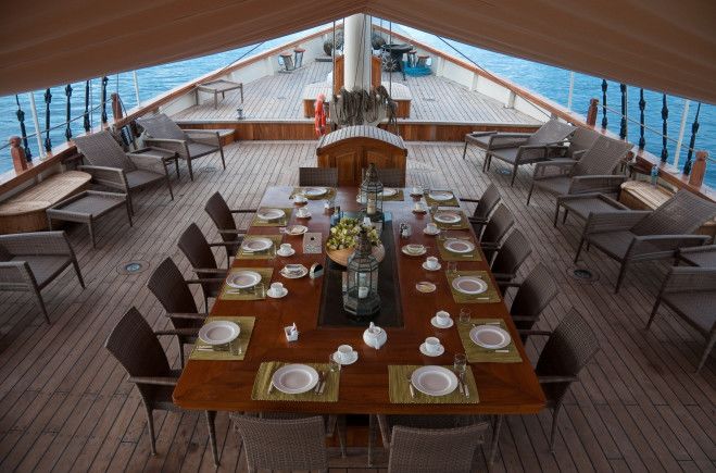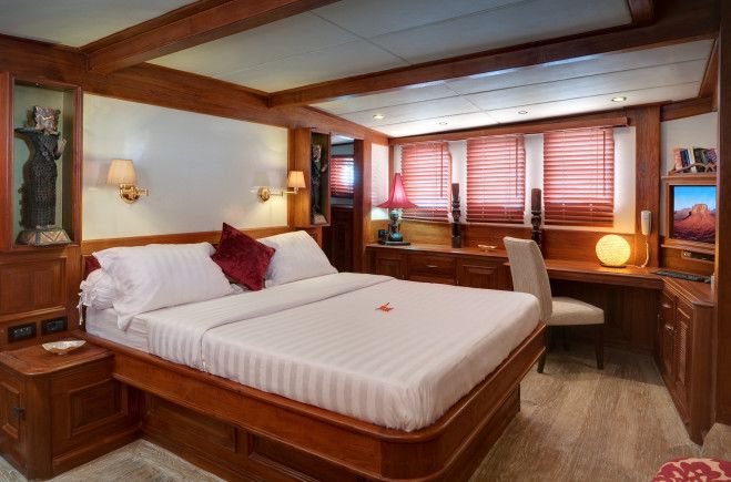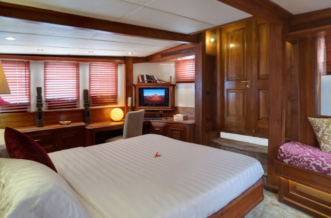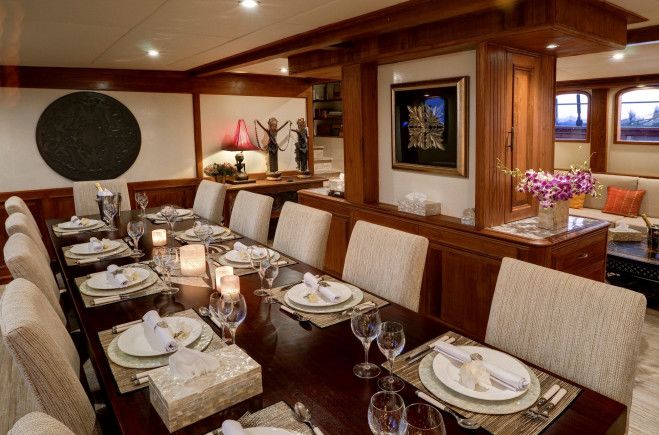 Both the exterior and the interior represent a harmonious fusion of eclectic Asian and classic European craftsmanship in an effortless symbiosis of modern stylishness and old world charm. Her main saloon and formal dining for 14 is fully air conditioned and equipped with a large flat screen TV, library and comes complete with all the latest mod-cons.