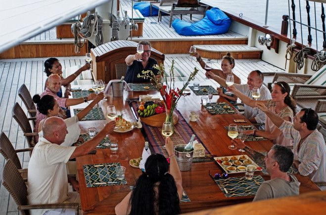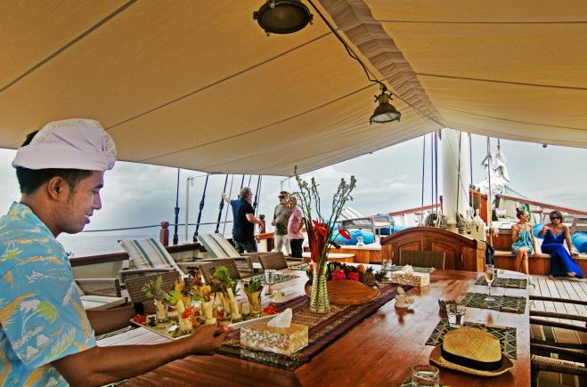 Outside, Mutiara Laut benefits from a large 60-metre square open deck with oversized beanbags, sunpads and al fresco dining under the oversized Bimini. With a dedicated masseuse on board, a fleet of water toys and scuba diving for both certified and beginners, she will cater to all guests’ leisure activities.