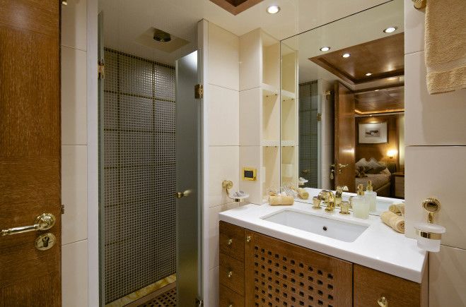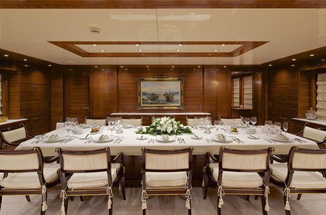 Throughout M/Y O’Ceanos, you will notice that you are constantly surrounded by Italy’s finest marble, fabrics, Cherry wood, Teak wood, White Laka, Radipa Dimadrona, Piuma di Magano, and mosaic. Nothing was negotiated or spared for elegance and sophistication.