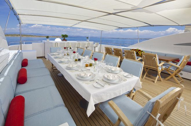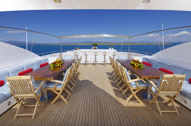 M/Y O’Ceanos is a 49.23m Mondo Marine luxury yacht available for charter. With a total of 7 cabins (1 Master, 1 VIP, 2 Double, 3 Twin), she can charter up to 12 guests with a crew of 11. M/Y O’Ceanos is Mondomarine’s 49 metre perfection with 11 crew. Her engineering excellence, design, and immaculate crew are what make her stand out and recognized throughout the charter market.