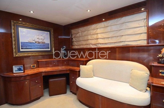 Яхта может похвастаться просторными открытыми пространствами. В кормовой части яхты расположена открытая обеденная зона. На сандеке установлена джакузи. Здесь же располагается солярий.