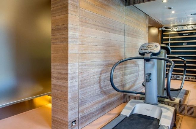 Private lounge area. 60" Apple TV. Massive swim platform at water level. Shower. Gym offers the following equipment: Treadmill, Elliptical trainer, yoga balls, weight bench, weights up to 50lbs., 50" TV, separate shower, private toilet.