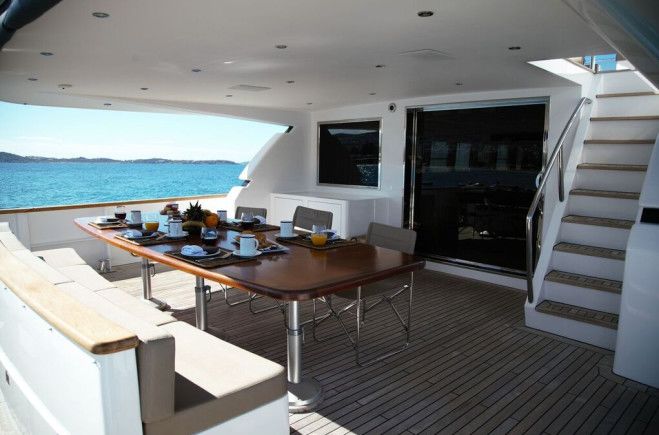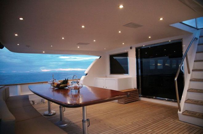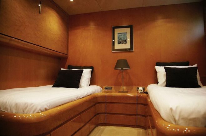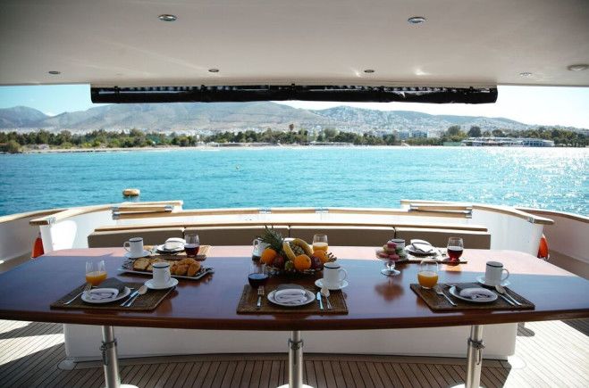 Families and groups of friends will comfortably accommodate themselves in 5 luxurious cabins, enjoying Project Steel’s lavish, spacious interior and ample exterior space, whilst enjoying the 5 star services of a truly professional charter crew - a perfect combination for an unforgettable cruise in Greece! 12 guests in 1 Master Suite (King), 1 VIP (Queen) & 2 twin cabins each with an additional single upper pullman, all with en-suite facilities and individual A/C control 1 Double convertible to playroom on Main Deck