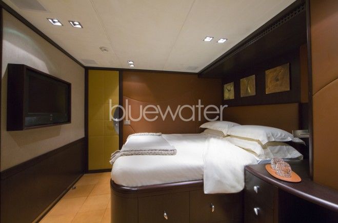 - Мастер каюта на главной палубе с кроватью Kingsize. 2 ванные комнаты с раковиной, душем, туалетом,биде.