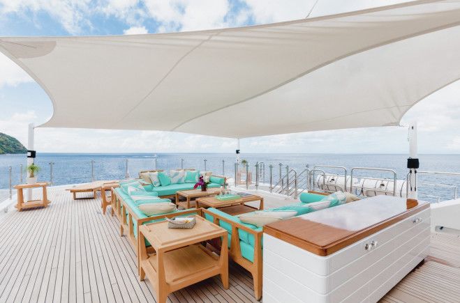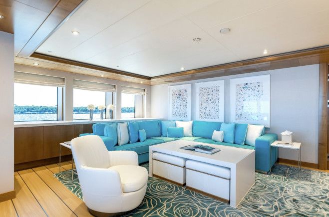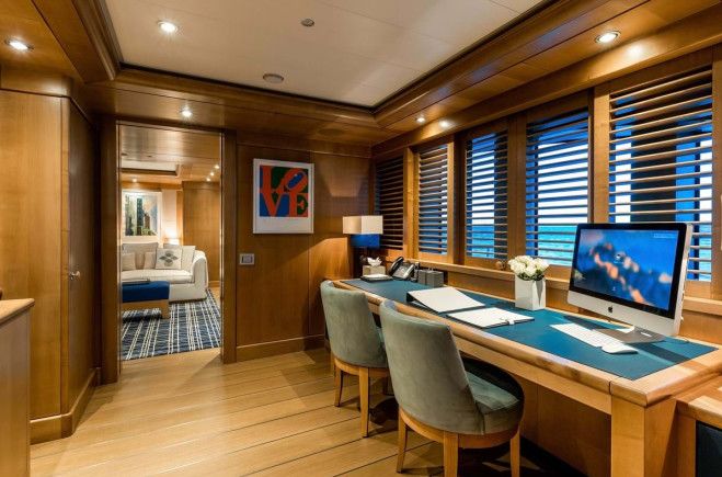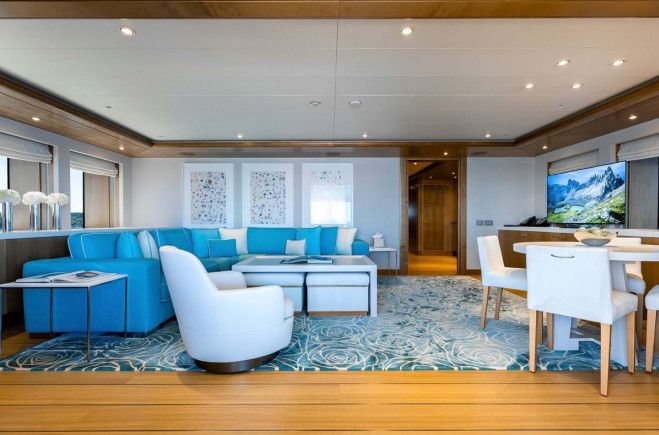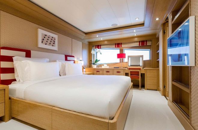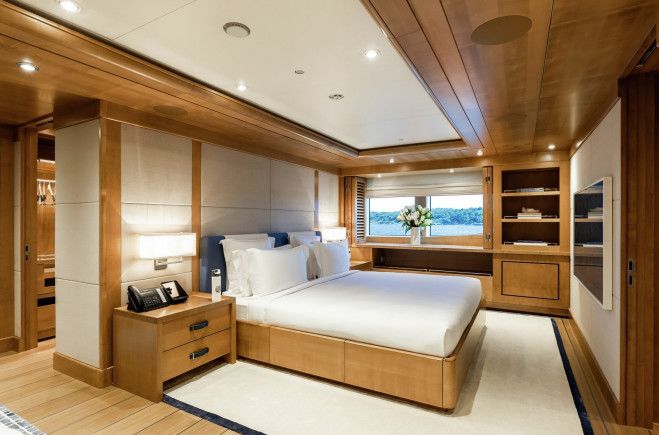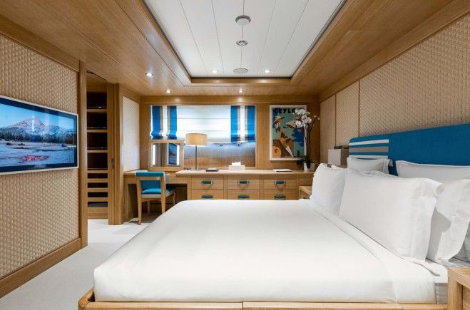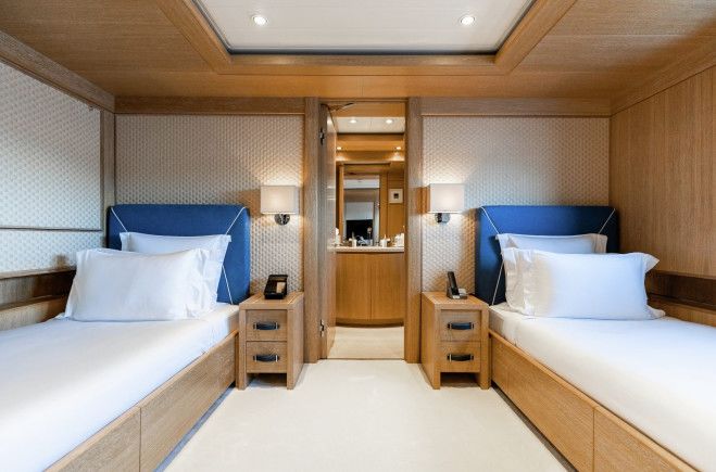 Main deck – Master double cabin with adjoining office, his and hers walk-in wardrobes, sofa area, balcony and shower room en suite - King size bed Bridge deck – VIP double cabin with shower room en suite - King size bed