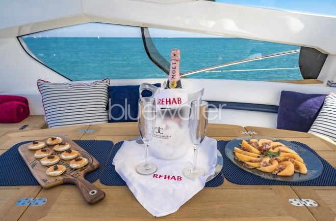 Модель серии Predator 68 - это роскошный спортивный круизер, способный развивать скорость до 40 узлов. Только представьте себе такой потрясающий чартер! Характерной чертой всех произведений Sunseeker является наилучшее использование всего доступного пространства на борту: зоны для обедов на свежем воздухе легко превращаются в дополнительные территории для загара. Rehab может принять на борт 4 гостей в двух каютах double, комфортабельных и декорированных с большим вкусом. В каждой каюте есть телевизор и собственные удобства. Просторный салон яхты оборудован телевизором с плоским экраном с возможностью просмотра SKY и доступом в интернет.