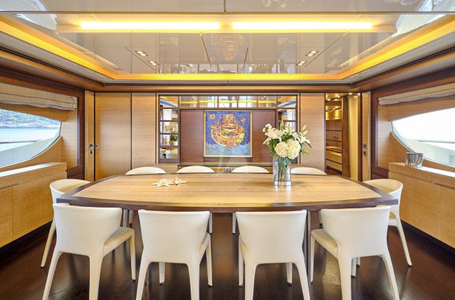 One full beam Master cabin with king size bed on the main deck and en-suite facilities.