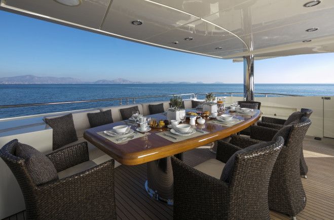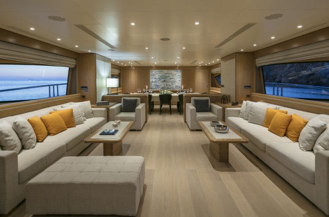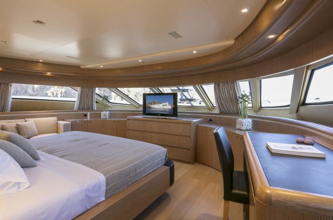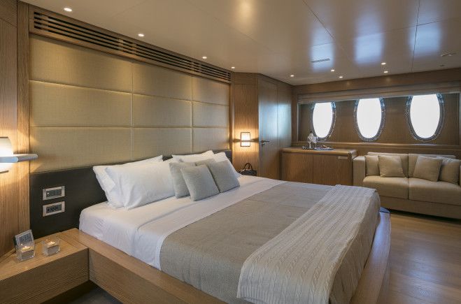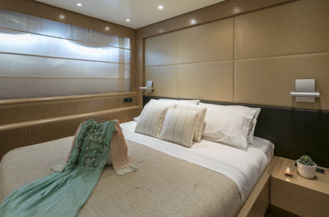 Number of cabins: 6 Cabin configuration: 4 Double, 2 Twin Bed configuration: 3 Pullman, 2 King, 2 Queen, 4 Single Number of guests: 12 - One master suite on main deck - One master suite on lower deck with a Pullman berth - Two VIP staterooms on lower deck - Two twin staterooms on lower deck with a Pullman berth each
