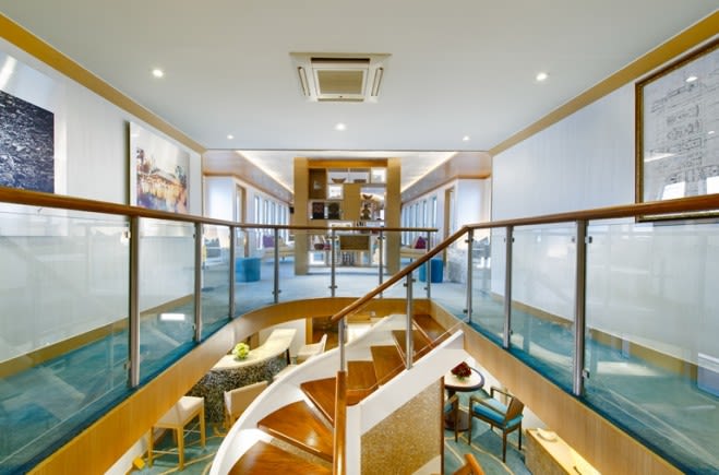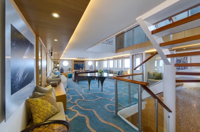 Просторная передняя палуба и 5 разноуровневых палуб с проходами по всей территории яхты обеспечивают гостям открытые и затененные зоны для отдыха, уединенные гостиные уголки, столы для обедов на свежем воздухе и удобные диваны. Гости могут разнообразить свое времяпрепровождение за принятием солнечных ванн, то полностью расслабляясь на огромных удобных лежаках, то окунаясь в освежающую воду jacuzzi.