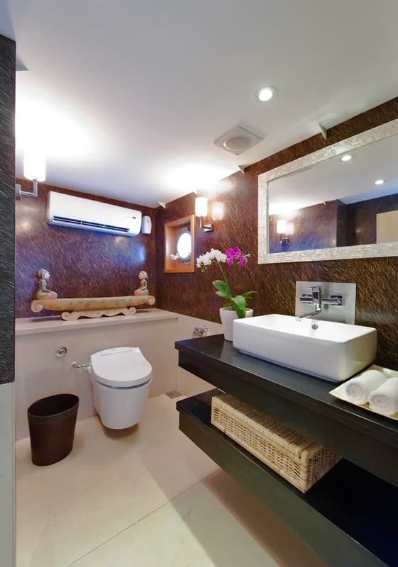 Интерьеры яхты Salila радуют глаз, они уютные и гармоничные. Натуральное дерево, мрамор и мебель сливочных оттенков создают теплую, комфортную атмосферу. Интересными акцентами интерьера стали объекты местного фото-арта, живописные картины и иные предметы искусства.