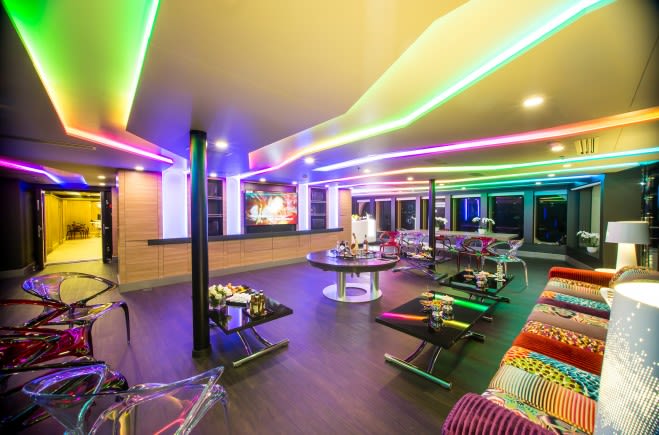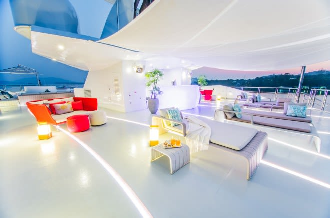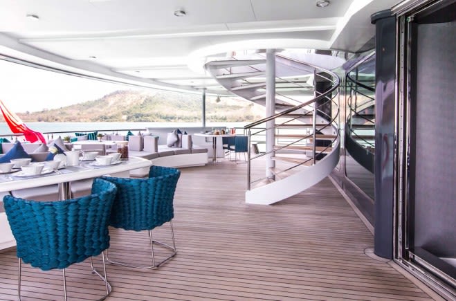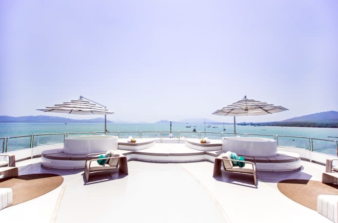 Прекрасная яхта Saluzi прошла полную перестройку с период с 2012 по 2014 годы и сейчас доступна в аренду. Эта потрясающая яхта способна принять на борт 32 гостя. В их распоряжении 5 просторных палуб. Гостям предлагаются 16 кают, в том числе 2 каюты Владельца, большой спа с массажем, полностью укомплектованный тренажерный зал, большой кинотеатр под открытым небом, караоке-бар, 2 jacuzzi на палубах и чрезвычайно востребованный центр подводного плавания с аквалангом. Есть на борту и офисная зона. Стабилизаторы качки при нулевой скорости и на ходу делают путешествие очень приятным. Все на Saluzi предусмотрено для того, чтобы создать ощущение шикарного плавучего пляжного дома, а небольшая осадка яхты идеально подходит для исследования чудес Юго-восточной Азии и Индийского океана.