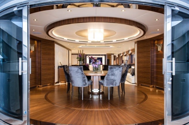 На главной палубе расположен салон, обеденная зона и Каюта Владельца в передней части палубы. Вместо традиционного расположения обеденного стола в срединной части корабля, здесь стол стоит ближе ко входу на кормовую часть палубы, что дает гостям достаточную уединенность и возможность любоваться прекрасными видами.
