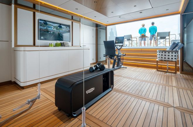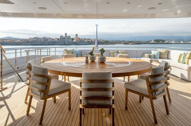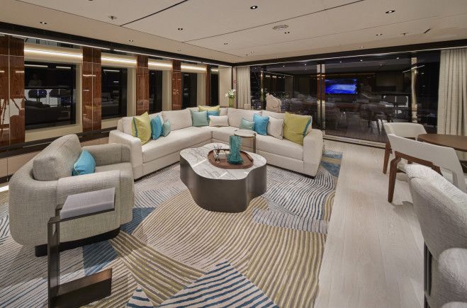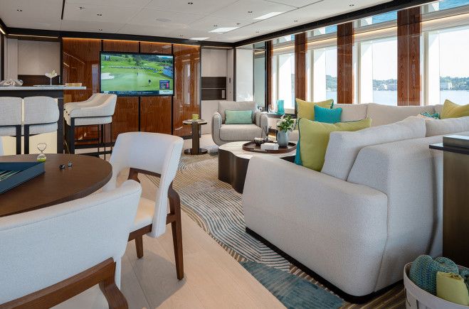Интерьер Solemates представляет собой мастерское сочетание утончённой элегантности и яркого, ориентированного на семейный отдых современного стиля. Продуманный владельцем в сотрудничестве с Лукой Дини, он отражает безупречный вкус и тщательно подобранную роскошь в каждой детали. В центре яхты расположен эффектный атриум с выразительной лестницей, создающий архитектурный акцент, а добавленный французский балкон в каюте владельца обеспечивает камерную и насыщенную связь с морем. Пространства главной палубы наполнены естественным светом благодаря панорамным окнам, подчёркивающим современную мебель и индивидуальные дизайнерские решения, включая эксклюзивный обеденный стол от D’Tales и освещение из коллекции Radiant Collection от John Pump в мастер-каюте. По всей яхте интерьеры дополнены изысканной мебелью от Holly Hunt, Maison Pouenat, Christian Liaigre и Alexander Lamont, создавая тёплую, современную атмосферу, которая одновременно гостеприимна и по-настоящему представительна для любого случая.