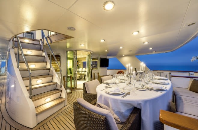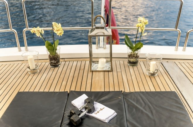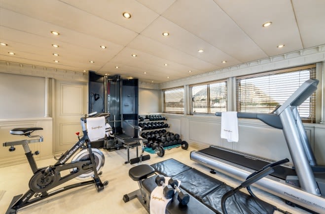 Air conditioning, Deck Jacuzzi, Gym/exercise equipment, Stabilisers at anchor, Stabilisers underway, WiFi connection on board