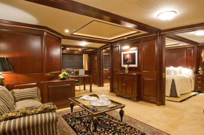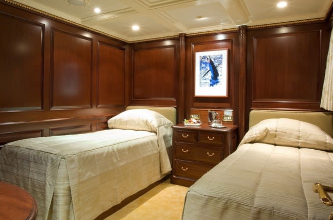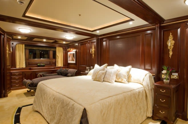 Просторная каюта Владельца и гостевые каюты уровня люкс все выполнены из драгоценных пород дерева и мрамора.
