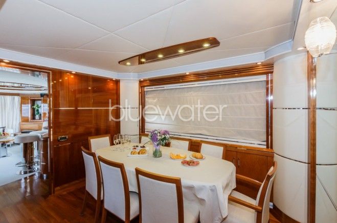 Прекрасный салон находится на главной палубе VELLMARI. В салоне есть кофейный столик, мягкие диваны, телевизор с плоским экраном, системы SAT и Bose. Элегантная обеденная зона отделена от основной территории лаунжа. Рядом на главной палубе расположен дневной туалет для гостей.