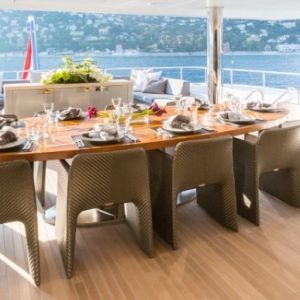 морских круизов : дальность хода яхты составляет 6 000 морских миль, а ультрасовременная система стабилизации качки гарантирует комфорт на борту в любых погодных условиях.