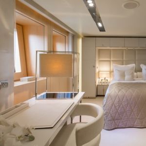 До 14 гостей могут комфортно разместиться в 7 каютах со всеми удобствами. Кроме роскошной двухуровневой каюты Владельца, яхта располагает тремя двухместными каютами с двуспальными кроватями (double), двумя двухместными с раздельными кроватями (twin) и одной трансформируемой каютой (double -twin).