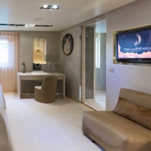 Трансформируемая каюта при желании может превращаться в домашний кинотеатр.