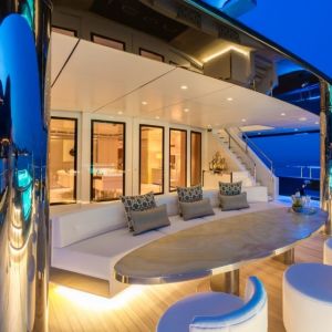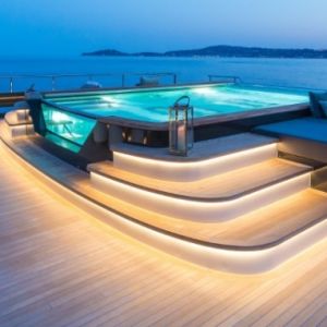 Яхта ICON — воплощение современных технологических решений. На ее борту есть обширный пляжный клуб, пятиметровый переливной безбортный бассейн, сауна и хамам.