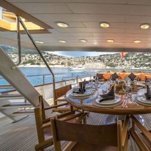 Для обеспечения максимального комфорта пассажиров яхта оборудована стабилизаторами нулевой скорости на якорной стоянке. Два мощных двигателя SCANIA по 500 л.с. каждый позволяют суперъяхте развить максимальную скорость до 14 узлов.