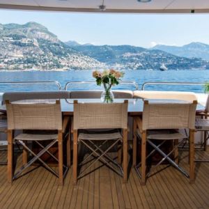 - Просторная обеденная зона на свежем воздухе в кормовой части верхней палубы