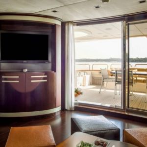 - Каюта Мастер-сьют во всю ширину яхты, расположенная на главной палубе.