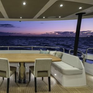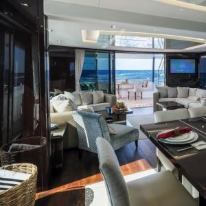 Это отличный выбор для чартера с семьей или друзьями. Роскошный интерьер, отличные ходовые качества, множество водных игрушек никого не оставят равнодушным.