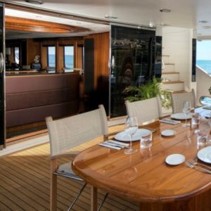 Главная палуба этой модели серии Sunseeker 121 идеально подходит для обедов на свежем воздухе и для развлечений. На ней расположен большой стол на 12 персон.
